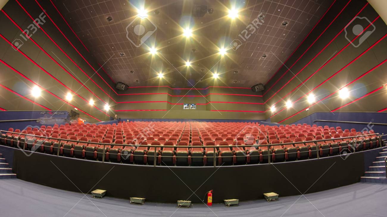 Viewers Fill The Cinema Hall And Watch Motion Picture At Movie Theatre Timelapse Red Chairs And Big Screen Stock Photo Picture And Royalty Free Image Image 109155553
